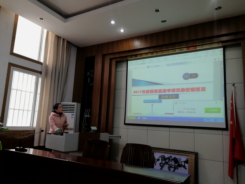 会上,汪小丽老师就2017年度国家基金申请资助管理情况、科研项目资金管理制度和2018年国家基金申报的相关注意事项做了总结和说明,特别是对2018年度国家基金新政策、限项申请规定和申报书初审相关事项做了解读和详细说明,老师们纷纷表示受益匪浅。