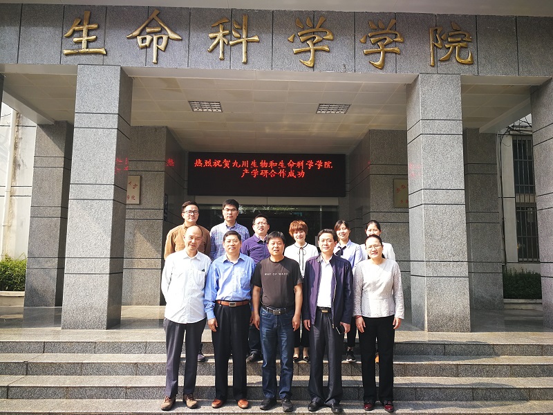 双方签订产学研合作协议后,韩国祥代表九川生物捐助爱心基金30000元,学院院长吴孝兵、副院长朱国萍与韩国祥共同为产学研合作基地、教育实践基地揭牌。