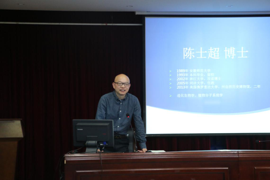 陈士超博士作了题为《分子时代地球生命之树的构建和意义》的学术报告会上,陈博士从人类与近亲动物及与其他物种间的演化关系谈起,用实验数据证明了人类共同的祖先是非洲的黑人,现代分子生物学的的方法向大家展示了天门冬目的演化、田螺属的演化过程重点介绍了包含230万物种的系统发育树以及系统树的构建在药物开发、农作物改良、生物保护等方面的作用。