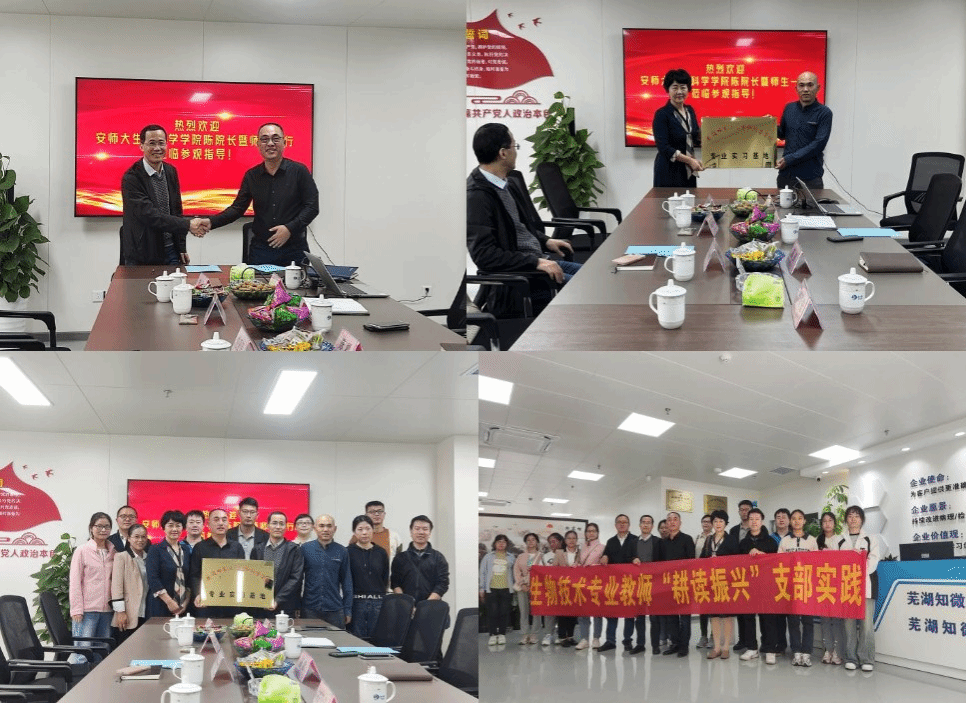 本网讯(生科院 李雪阳)10月11日上午,3044am永利集团官网副院长陈冬生和生物技术专业负责人刘爱民老师带队,生物技术专业“耕读振兴”党支部党员教师、生物技术专业研究生以及本科生学生代表共赴芜湖知微医疗科技有限公司开展实践活动,双方签署了共建专业实习基地协议,并举行了授牌仪式。